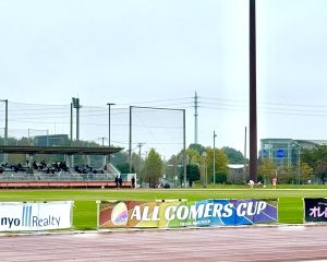 毎度のことなのですが、こっちで招集、あっちはゴール間際、その奥では表彰が始まって…